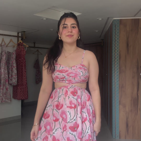 Coral Pink Maxi Dress in Coral Pink Shade With Pocket, Back Smocking and Adjustable strap